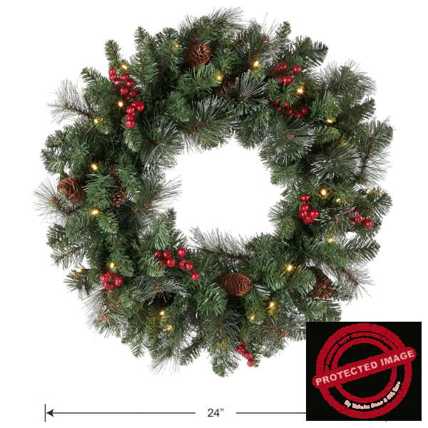 24 Inches Pre-Lit Artificial Christmas Wreath
