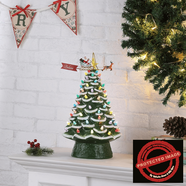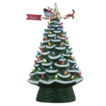 Bring home holiday nostalgia with the Mr. Christmas 90th Anniversary Animated Santa’s Sleigh Tree. This hand-painted ceramic tree features twinkling LED lights and Santa flying around the top in his sleigh for a magical touch.